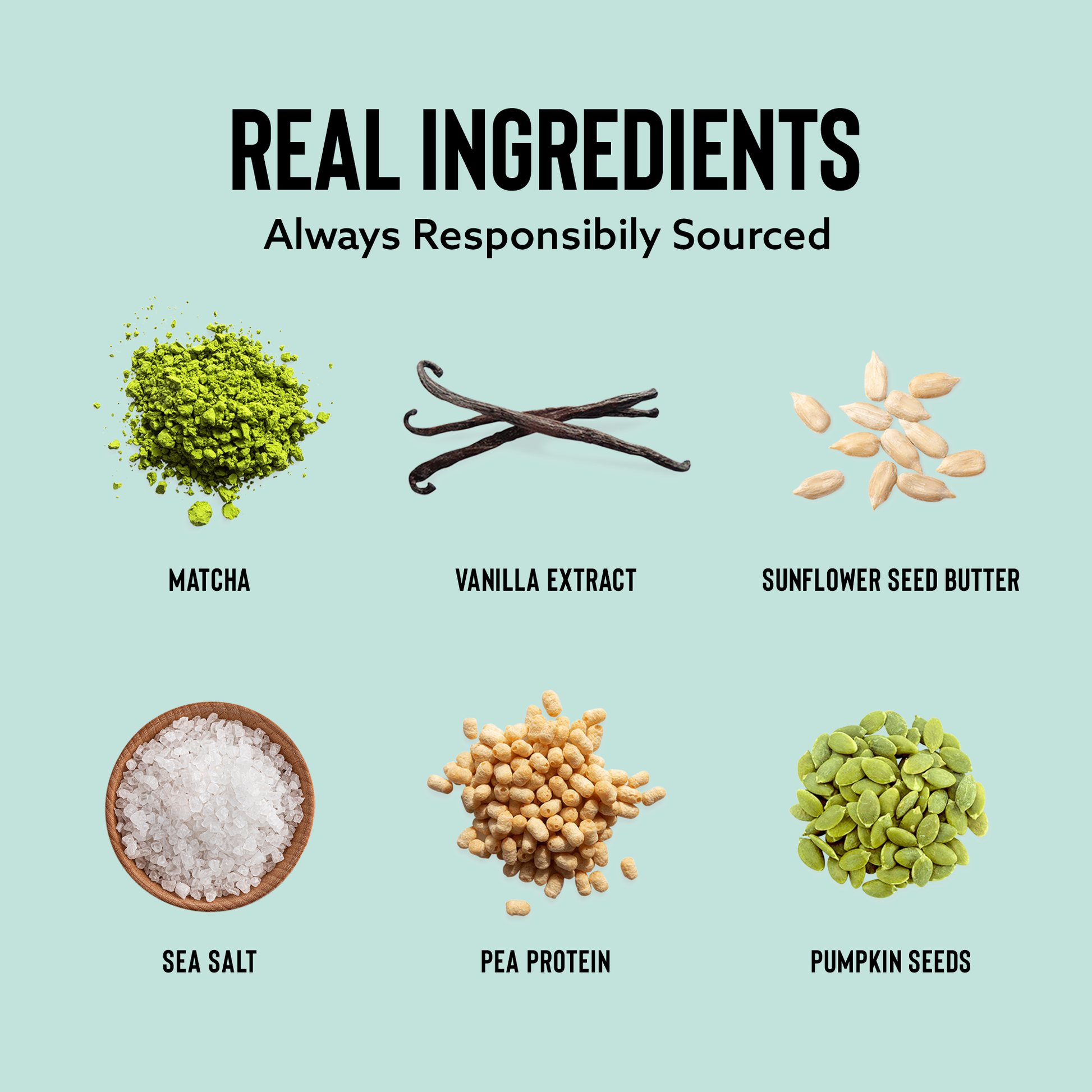 Our Matcha Vanilla Puff-Crispy Bar is a plant-based snack bar with 10g of pea protein. This vegan, gluten-free, and non-GMO protein bar is full of clean ingredients and only 170 calories. All of that and the texture of a rice-crispy treat and the taste of a matcha latte. Happy Snacking!