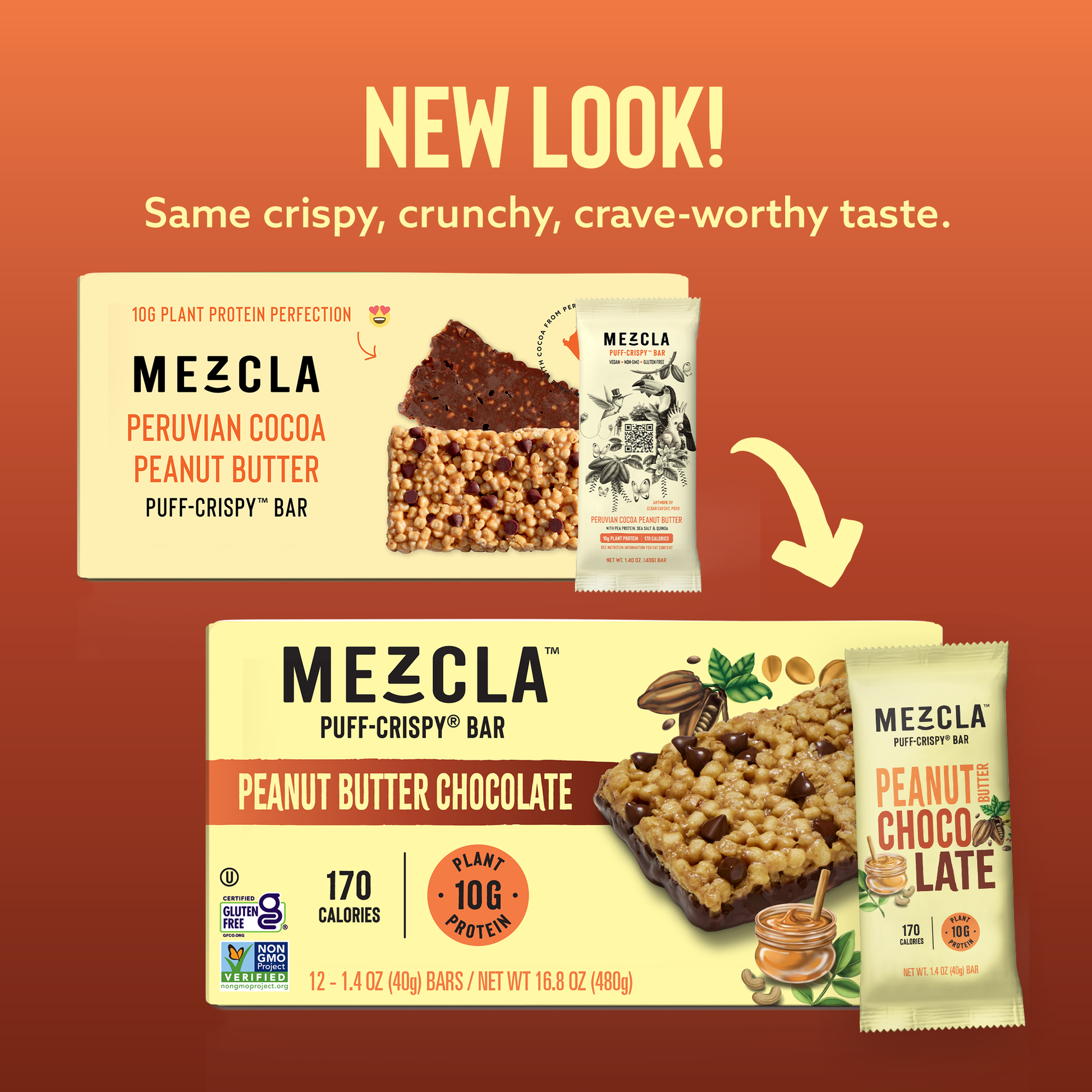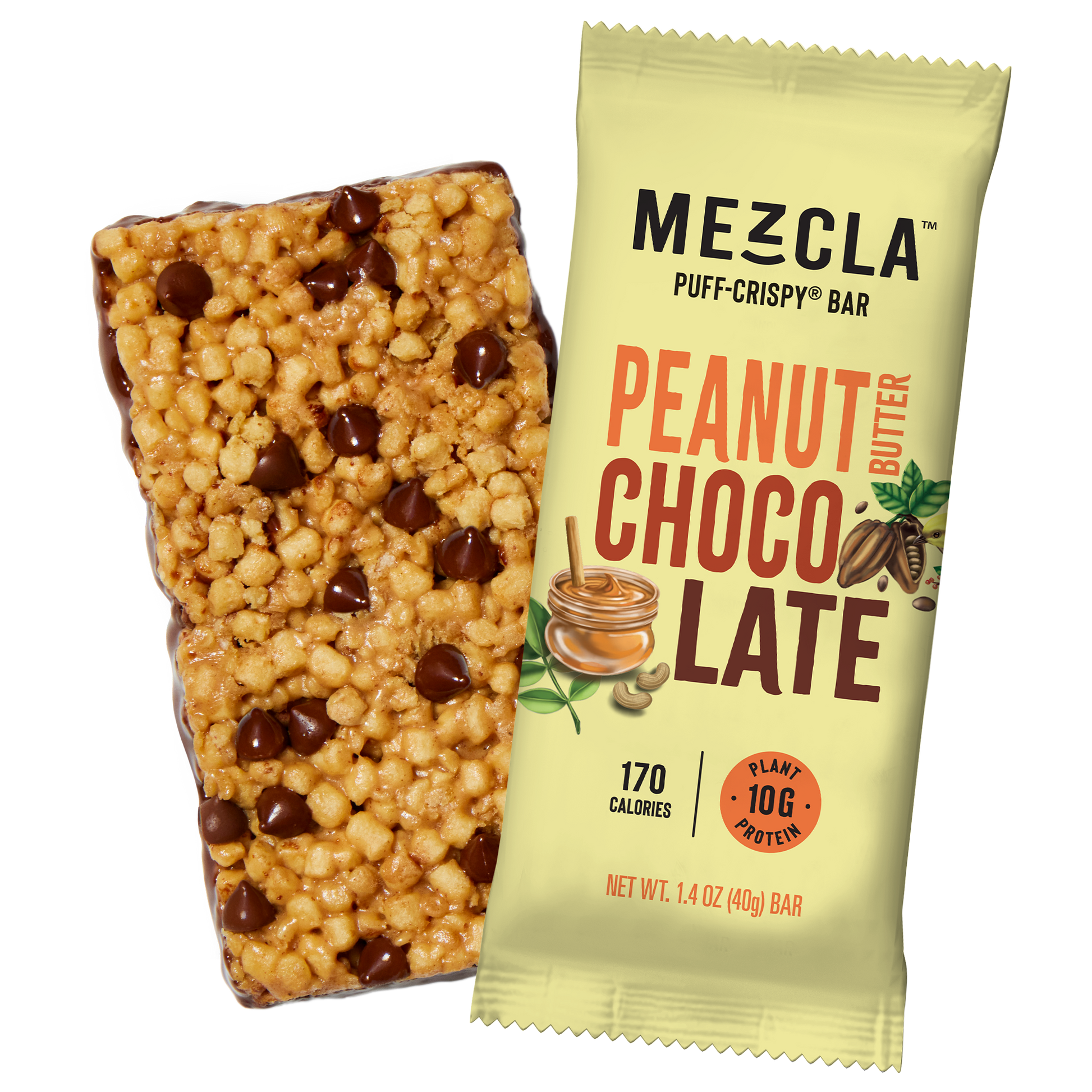Our Peanut Butter Chocolate Puff-Crispy Bar is a plant-based snack bar with 10g of pea protein. This vegan, gluten-free, and non-GMO protein bar is full of clean ingredients and only 170 calories. For those of you who aren’t quite ready to totally abandon the classic protein bar flavors you love, we took the already delicious chocolate peanut butter combo and made it even better! Happy Snacking!